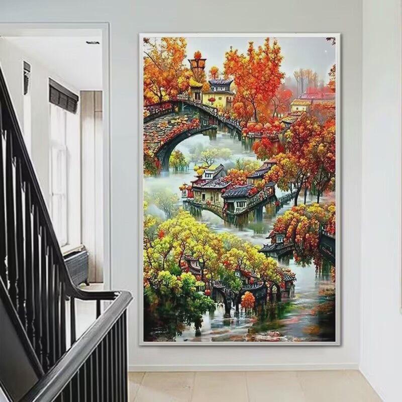 V3FP春夏秋冬四季十字绣2023新款客厅绣线满绣风景山水画四联画手