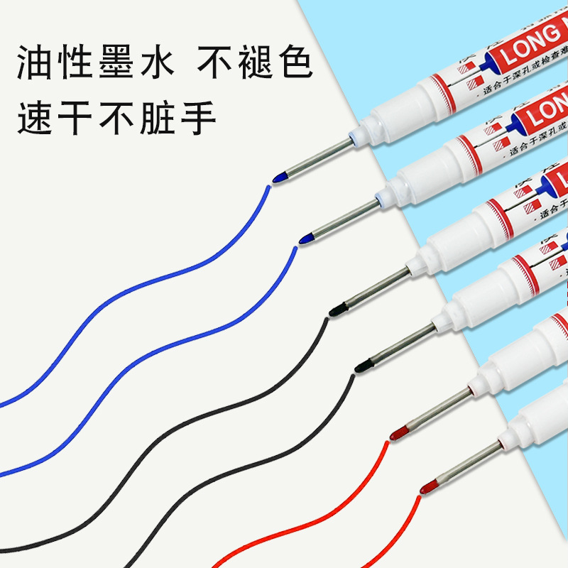 晨光长头记号笔油性木工专用划线笔工地瓷砖画线笔长嘴黑色笔深孔划线加长打孔防水防油速干顺滑深孔计号脱帽