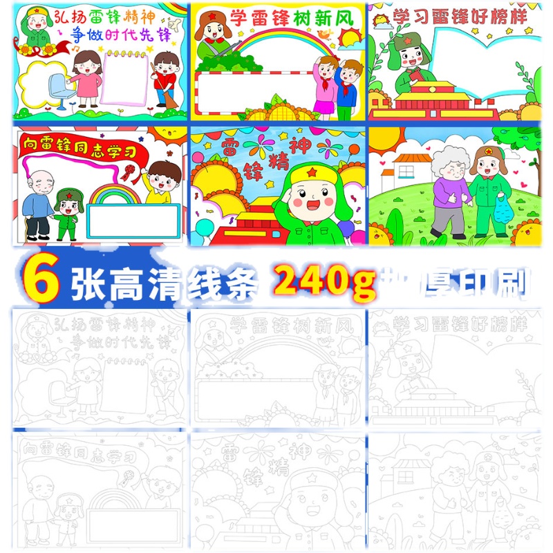 学雷锋树新风手抄报包邮弘扬雷锋精神学生好人好事半成品涂色小报