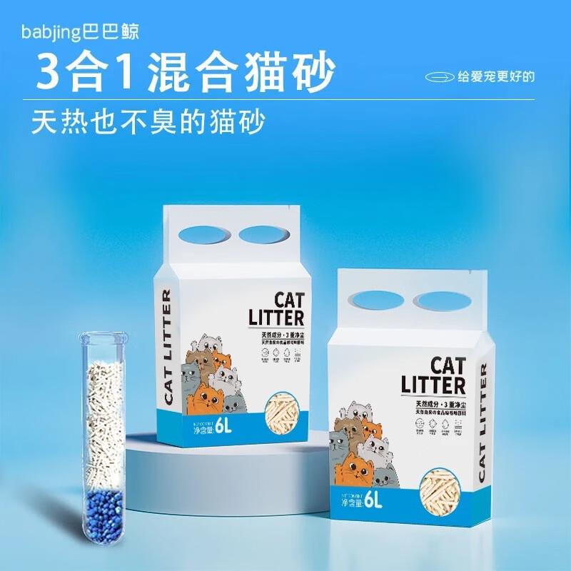 巴巴鲸混合猫砂迅速结团木薯砂吸水不粘底低尘豆腐膨润土除臭净味