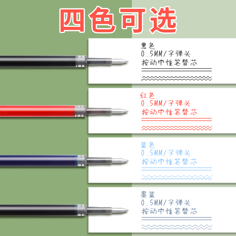晨光按动笔芯0.5子弹头按动中性笔替芯黑色红蓝黑k35笔芯g-5按压笔芯学生老师医用办公签字笔g5碳素笔芯考试