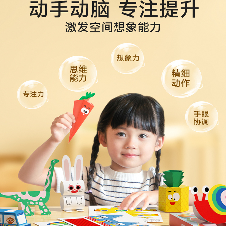 时光学益智立体手工制作折纸本思维训练启蒙儿童幼儿园diy创意3d立体益智趣味专注剪纸书男孩女孩小学生玩具