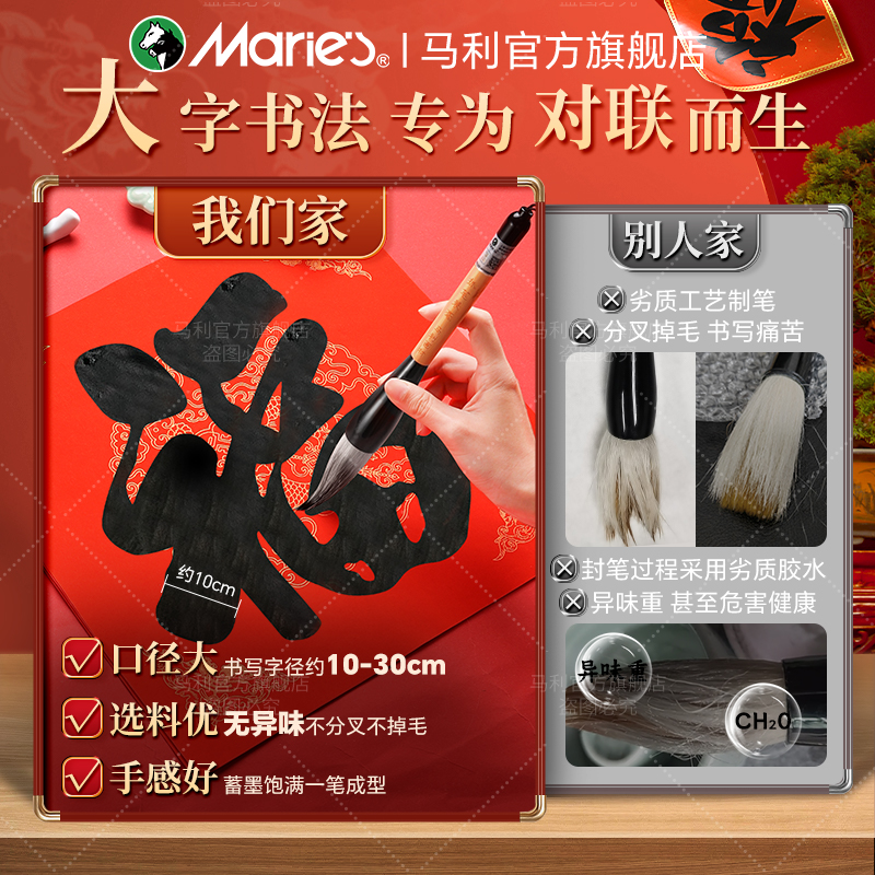 马利大毛笔斗笔写对联书法专用大号大字狼毫兼羊熊毫国画春联楷书抓笔初学者专业级软笔墨水套装官方旗舰店