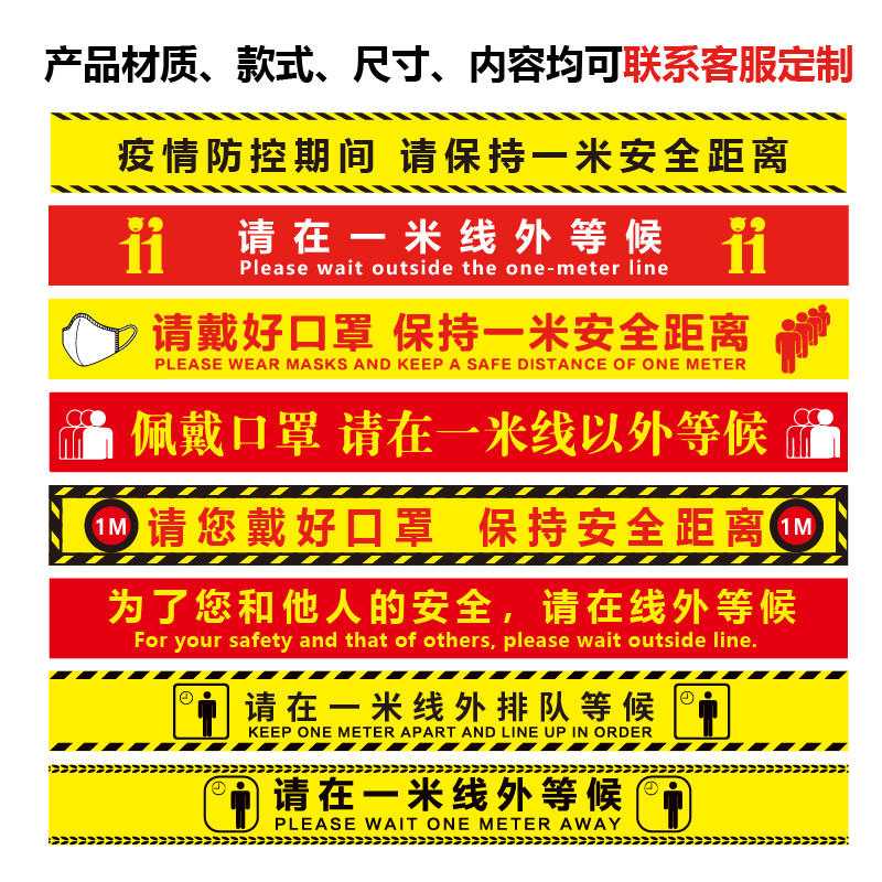疫情防控一米线地贴标识贴纸间隔一米请保持1米m安全距离疫情防控提示牌线外排队等候此线外有序排队隔离带
