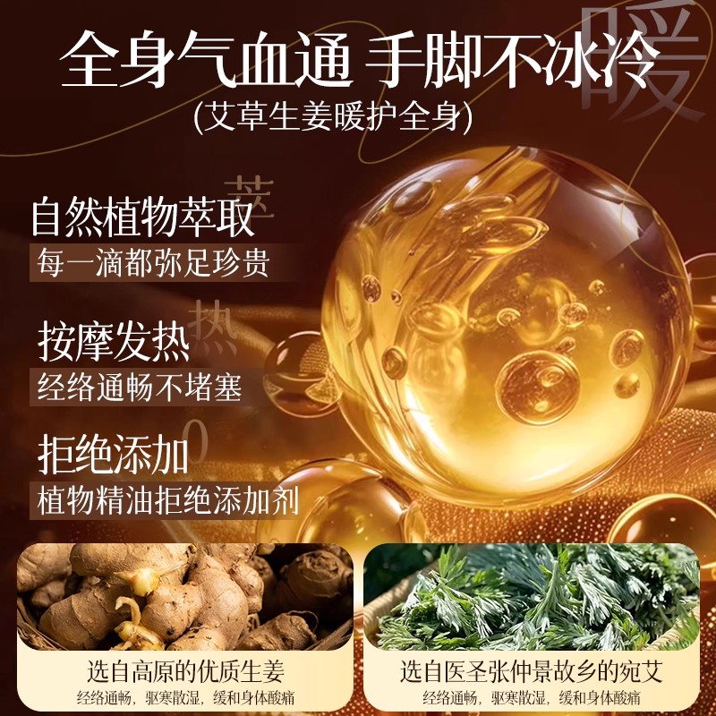 生姜艾草发热按摩精油私处全身体疏通经络开背推拿揉排毒刮痧专用