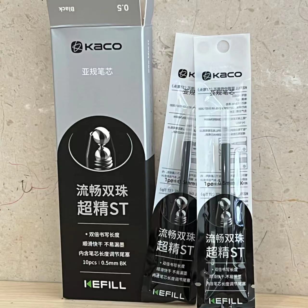 新升级KACO替芯亚规双珠笔芯ST头书源菁点0.5按动笔芯进口笔芯平替通用中性笔芯学生中高考试用Kefill双珠头