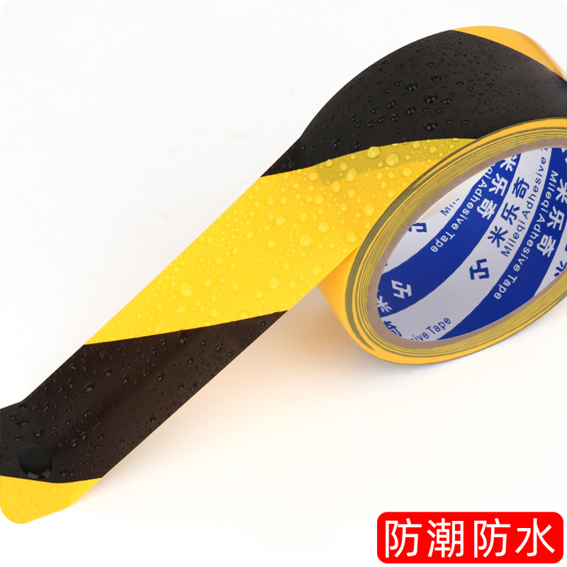 PVC黑黄双色斑马线警戒地标贴仓库工厂车间地面标识划线定位办公室区域划分楼梯台阶防水警示强力贴地板胶带