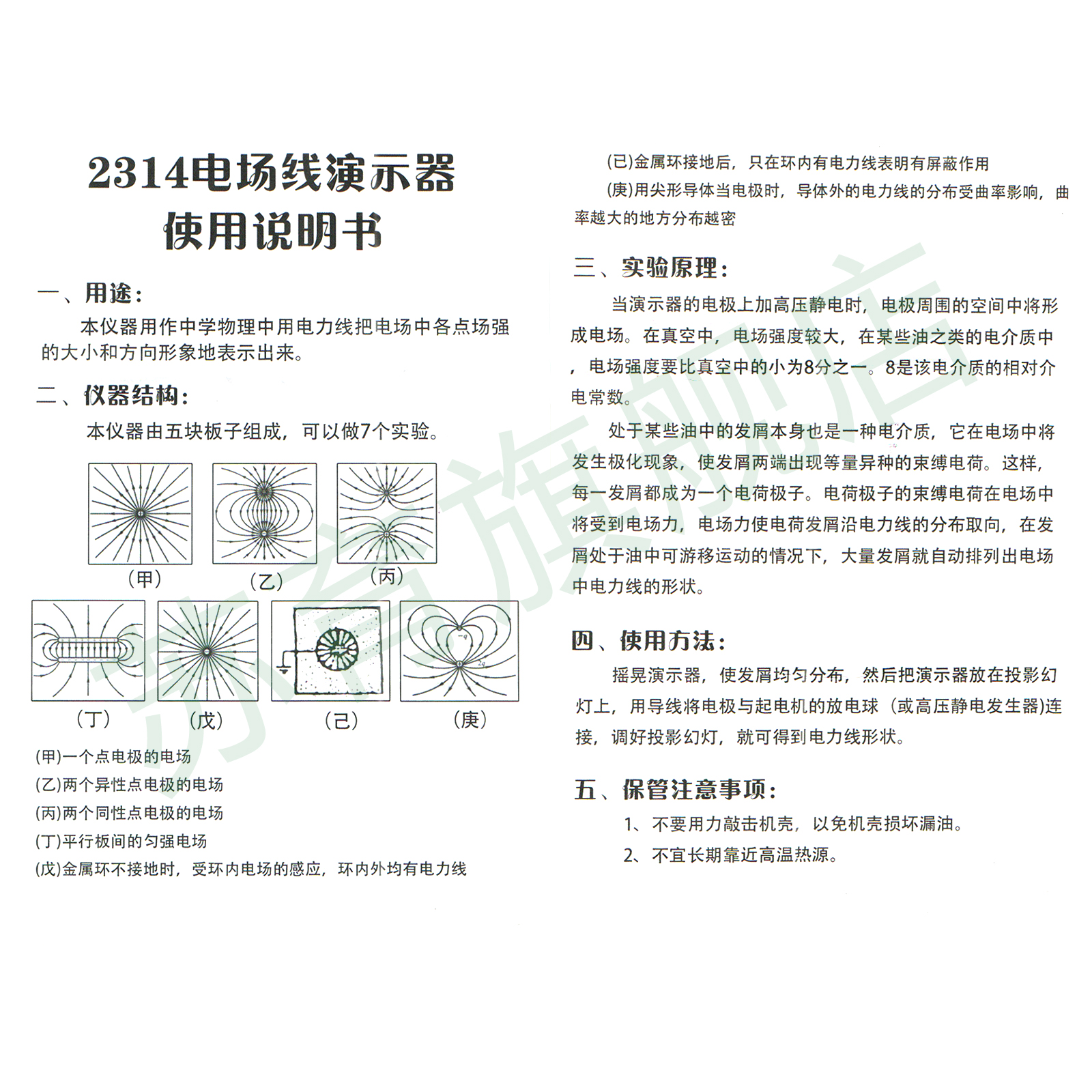 【苏育】23053电场线演示器静电电力线描绘各点场强的大小和方向平行板匀强电场点电极物理教学仪器实验器材