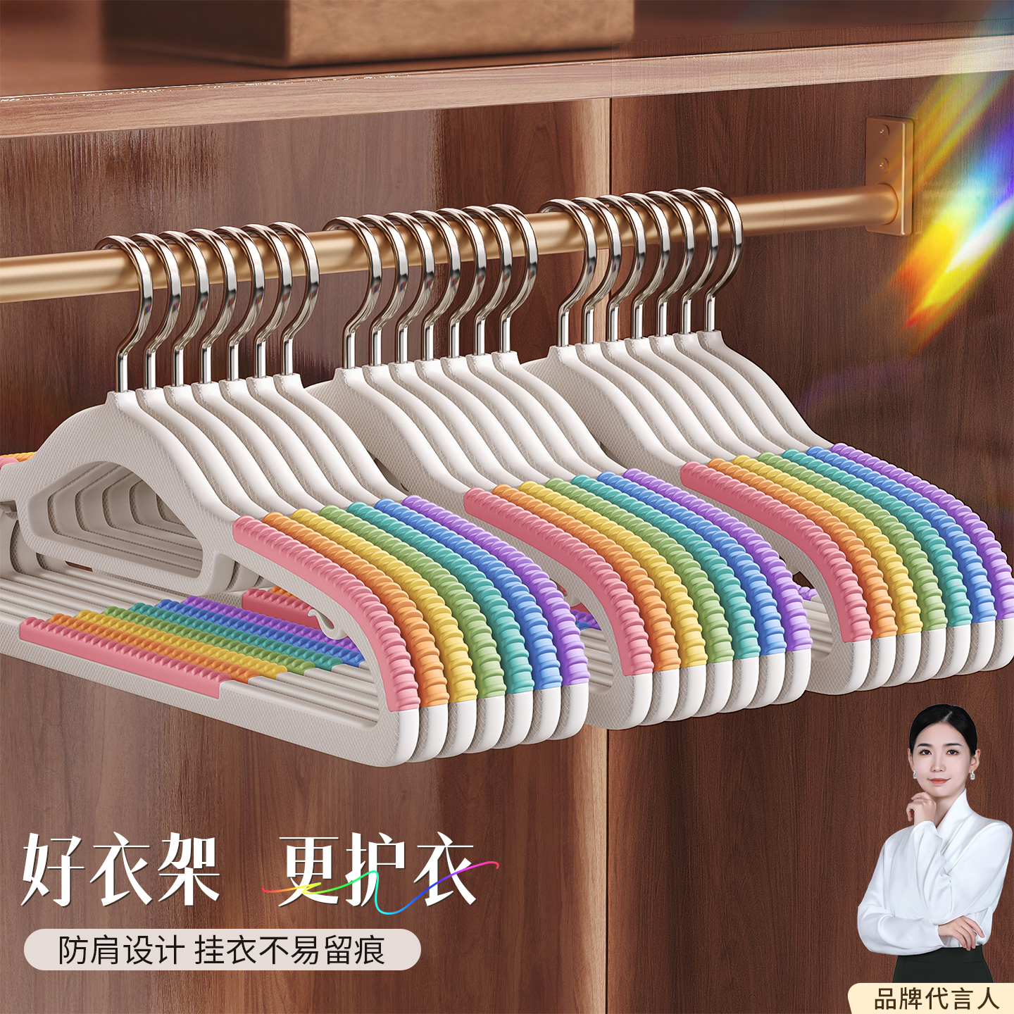 佳帮手彩虹衣架防滑无痕家用护衣防肩角晾衣挂衣服挂架架子衣撑子