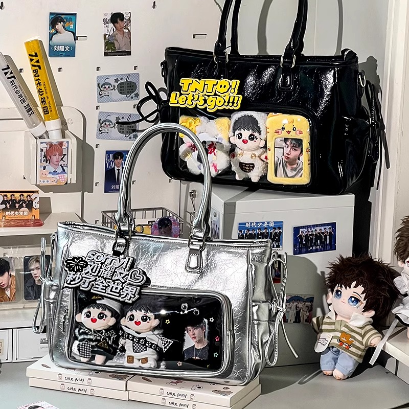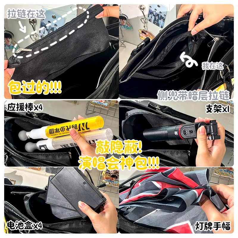 演唱会藏暗层包斜挎痛包双肩包大容量应援灯牌追星包包黑色休闲