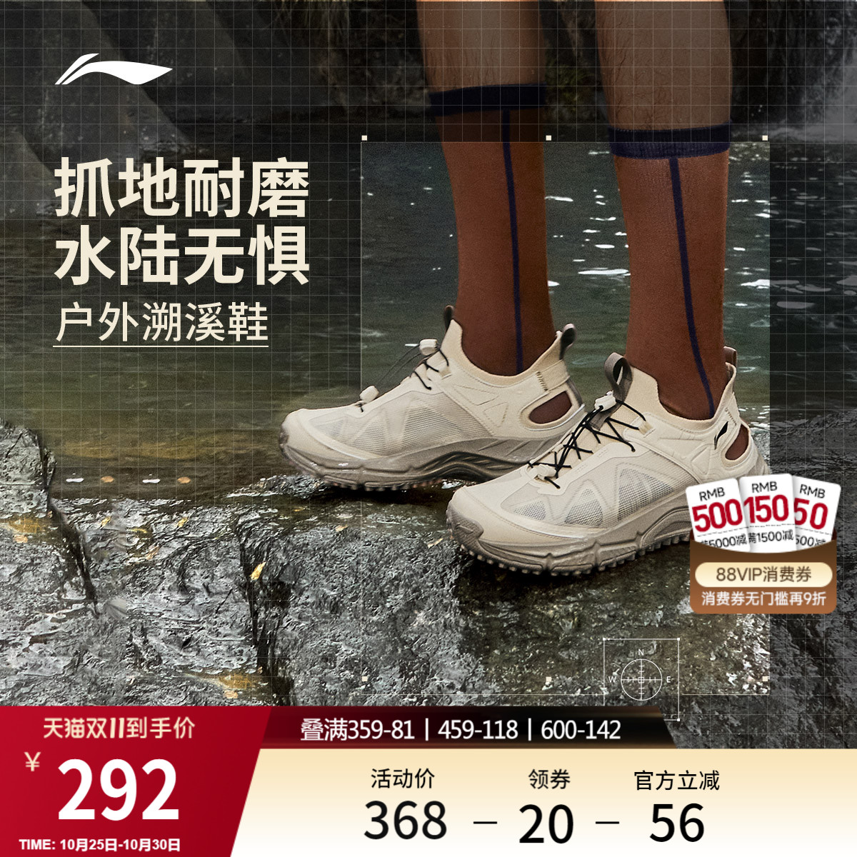 李宁逸界lite1.0丨溯溪鞋男鞋涉水鞋户外鞋防滑低帮徒步运动鞋男