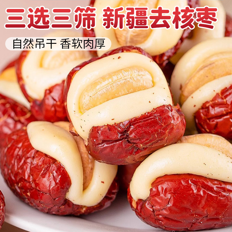 无核红枣新疆去核去皮若羌灰枣奶枣脱皮空心包粽子大红枣干货整箱