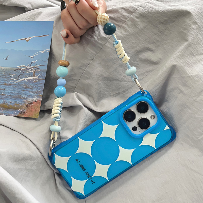 小众!蓝白星星适用于苹果16Pro手机壳背带斜跨华为pura80Pro调节挂绳vivox200s斜挎可背小米15Pro链条magic7