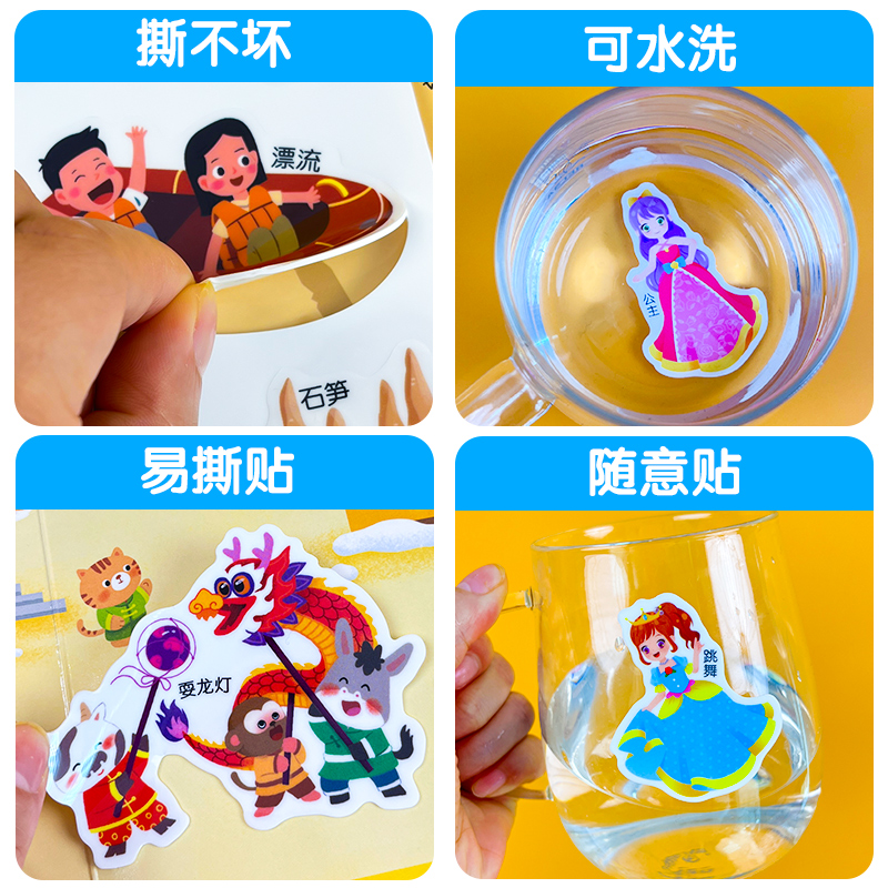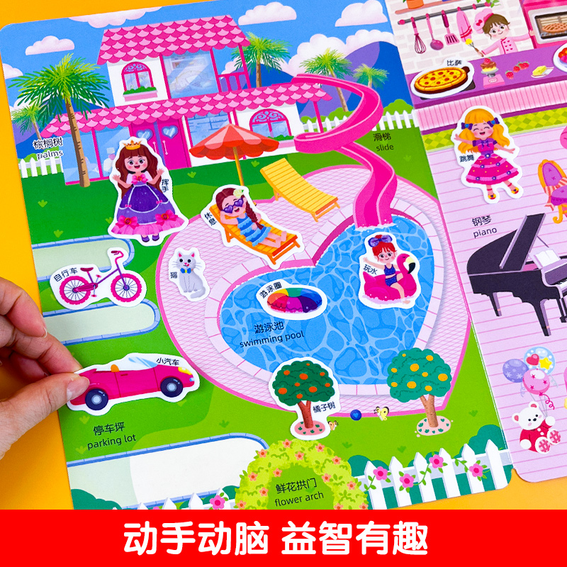 公主梦幻屋换装贴纸书玩具女孩 0-3-6-9岁卡通礼物儿童 益智女童化妆本贴贴画 幼儿早教认知启蒙果冻安静书 免裁粘贴画幼儿园礼品