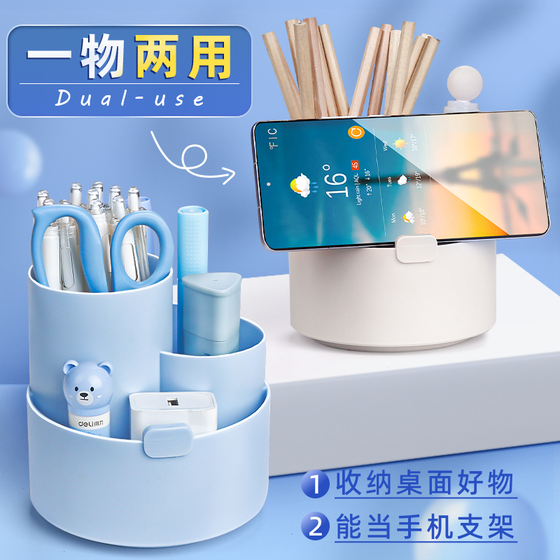 360度旋转笔筒收纳盒小学生办公室桌面笔桶儿童女孩创意时尚可爱ins风装笔的笔盒男孩书桌家用课桌大容量流行