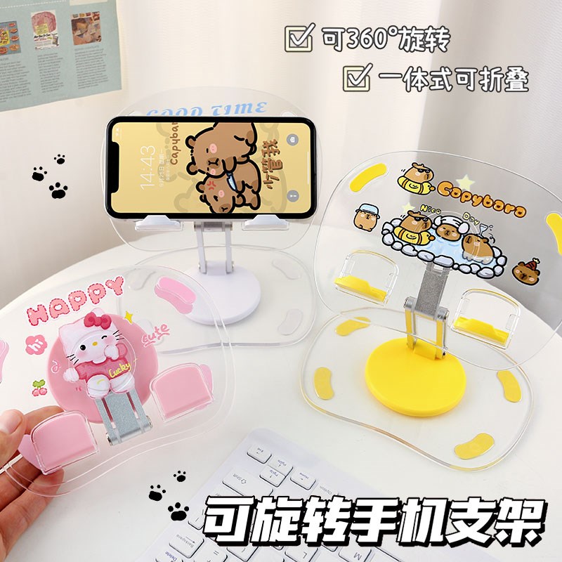 桌面手机支架旋转平板支撑架懒人架子亚克力可折叠升Y降追剧手机