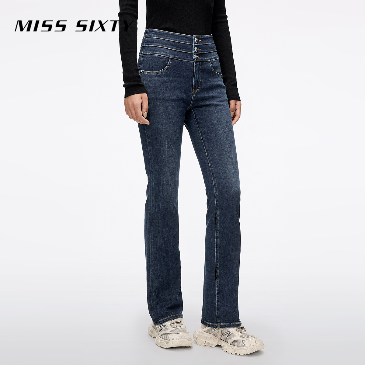 Miss Sixty2025秋季新款牛仔裤女三环高腰含莱赛尔修身微喇叭裤