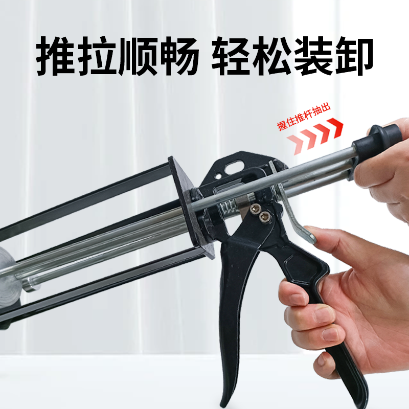 490ML胶枪10:1 AB胶筒混合管金属胶枪用于回天1830混合头普莱克斯AO420结构胶胶水打TS828胶枪混胶嘴