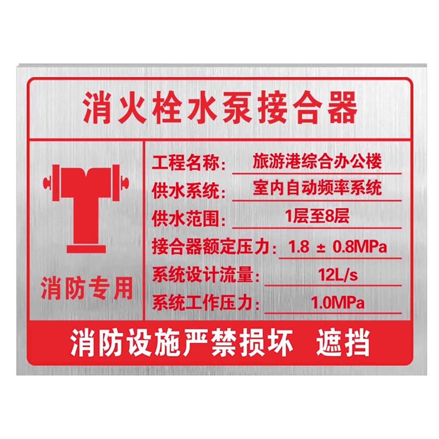 消防水泵接合器标识牌消火栓室外不锈钢标识挂牌喷淋水泵接合器标识地下消火栓指示牌泵房消防车取水口提示牌