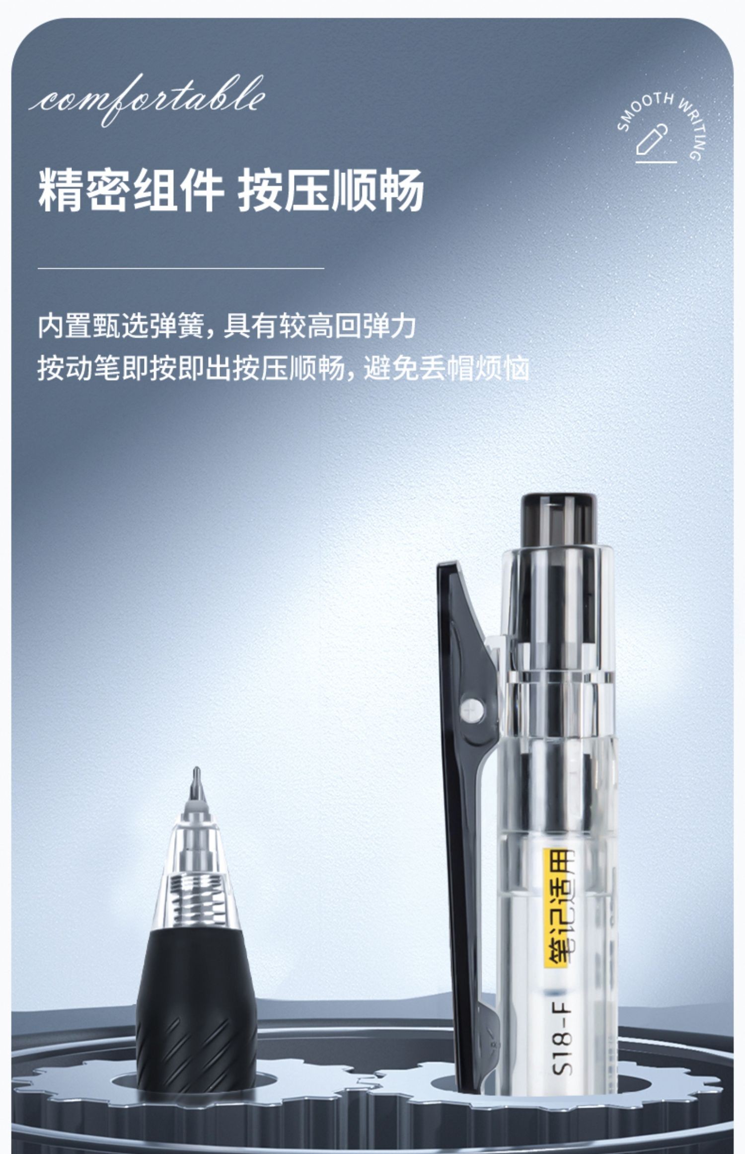 得力S18-F抗晕染速干按动中性笔0.5mm学生书写考试中性笔 ST笔头