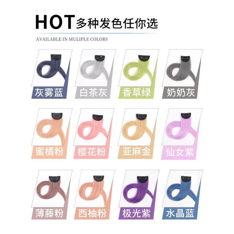 假发女片挑染渐变发片一片式发条短发彩色挂耳染长发粉色红色接发