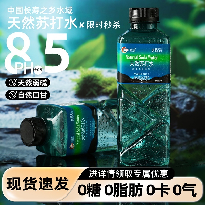 明流天然苏打水整箱弱碱性PH8.5饮用水360ml无添加无糖非纯净水