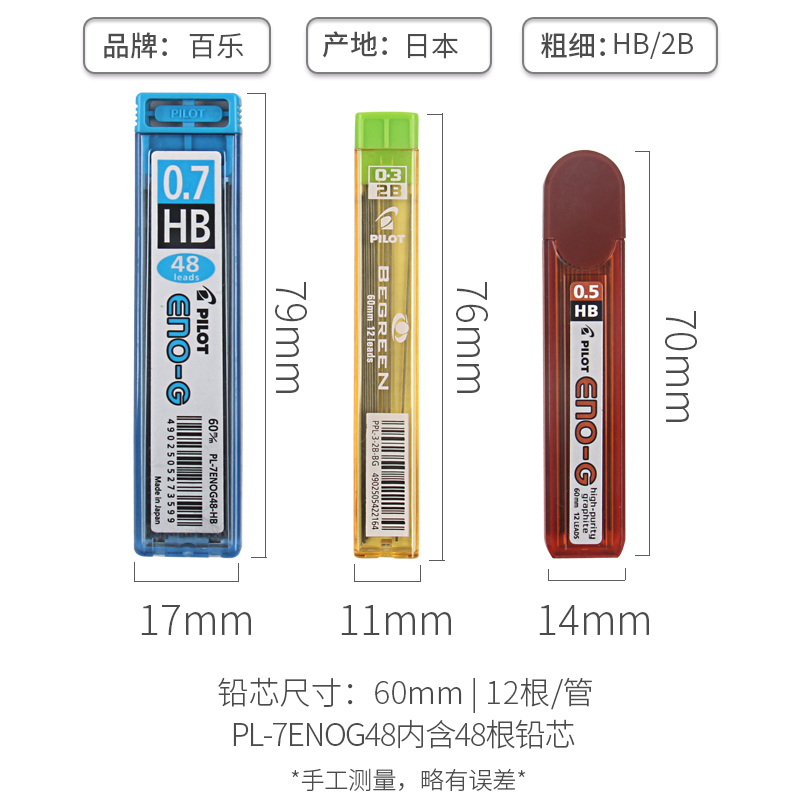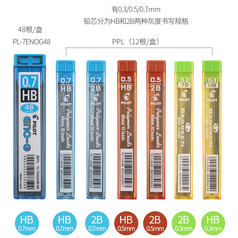 日本进口PILOT百乐铅芯2B/HB自动铅笔芯 PPL-3/5/7 小学生不易断铅笔心多规格2比笔芯0.3/0.5/0.7mm活动铅芯