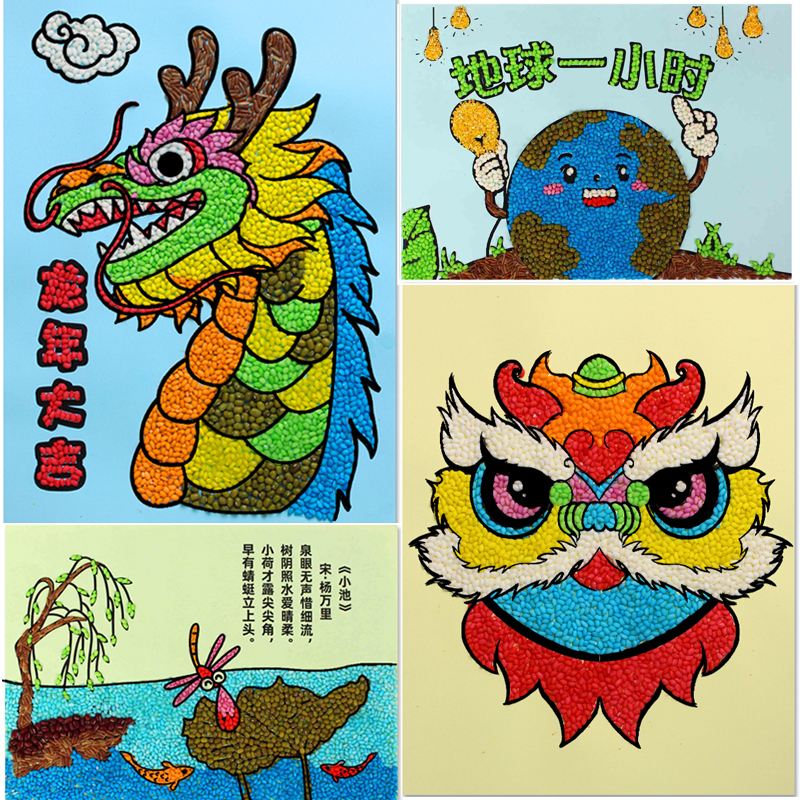 五谷杂粮粘贴画幼儿园豆子种子材料包丰收丰登秋天手工diy作品