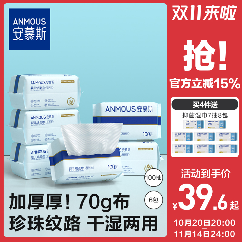 安慕斯婴幼儿绵柔巾手口屁专用宝宝干湿两用巾新生儿非湿巾棉柔巾