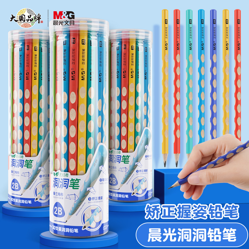 晨光洞洞铅笔铅笔小学生专用一年级学习用品无毒2B铅笔环保矫正写字hb铅笔文具儿童铅笔幼小衔接用练字洞洞笔