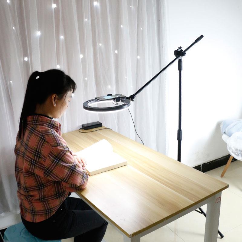 落地手机支架俯拍带补光灯桌面直播架伸缩三脚架通用多功能自拍