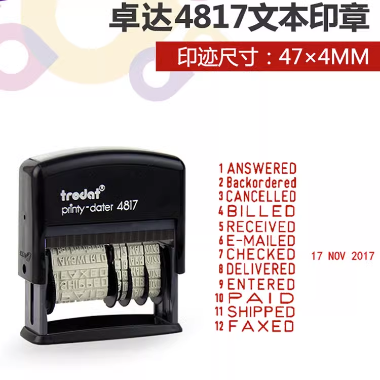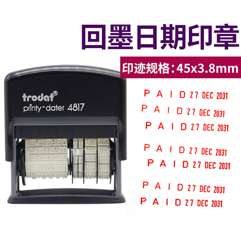可调日期印章received英文日历奥地利进口4817回墨英文年月日本财务手账检测打卡日期数字打码机paid文本包邮
