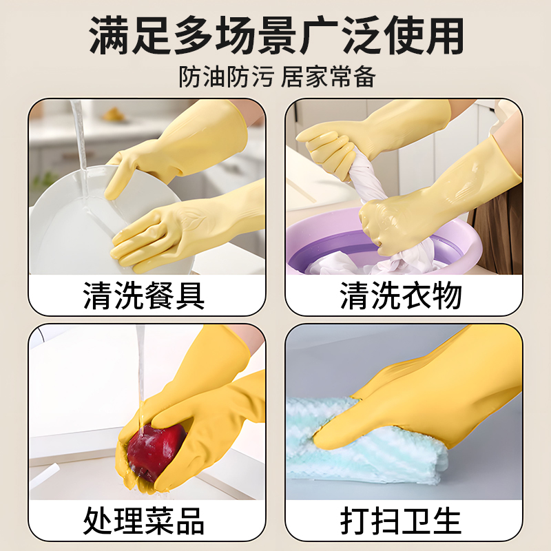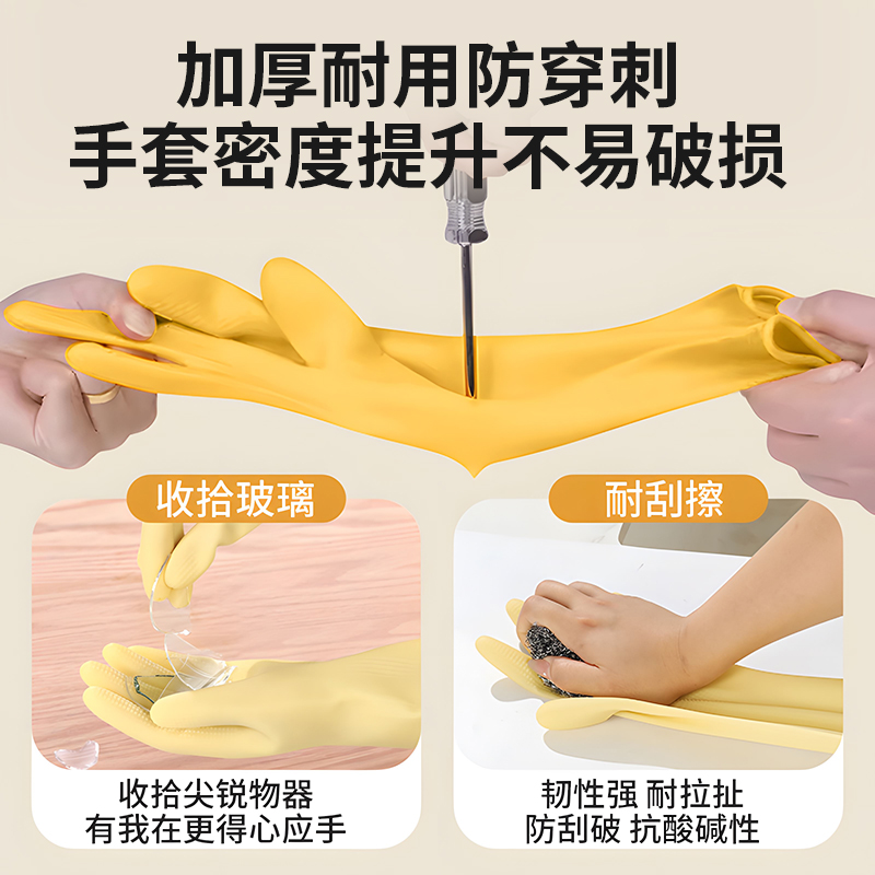 洗碗家务手套女防水耐用橡胶乳胶清洁洗衣服耐磨加厚加长厨房专用