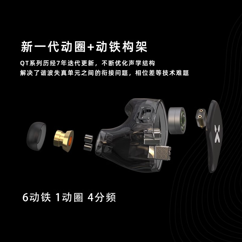 弱水时砂 QTX 圈铁有线耳机 1圈6铁混合式HIFI入耳式耳机