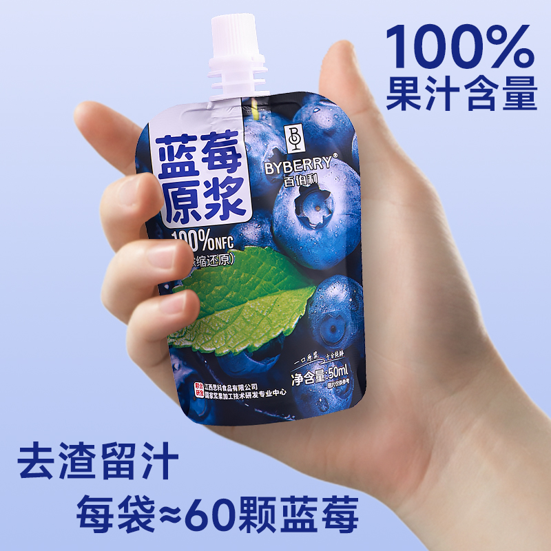 百伯利蓝莓汁100%nfc原榨蓝莓原浆果汁孕妇儿童饮料50ml装桑葚