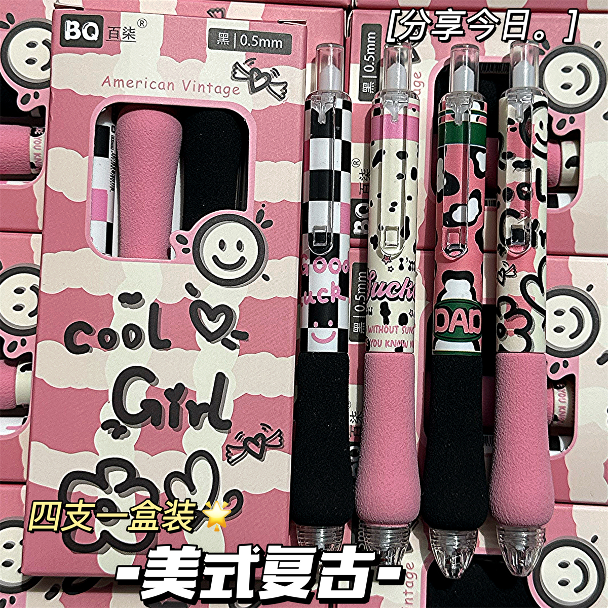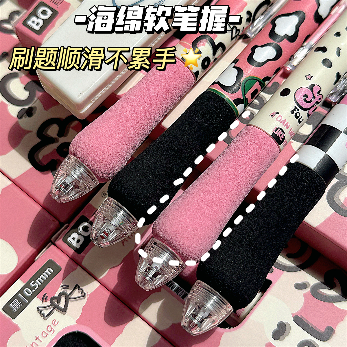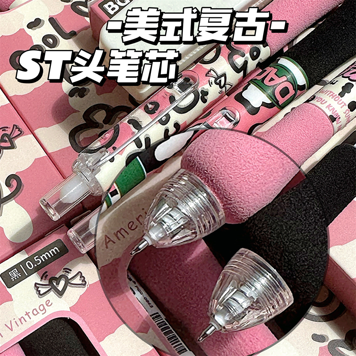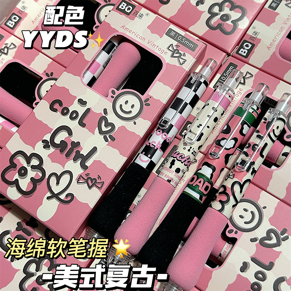 美式复古新款ins高颜值海绵胖胖笔格子控中性笔学生考试专用0.5mm速干顺滑刷题笔ST头黑笔签字笔圆珠笔