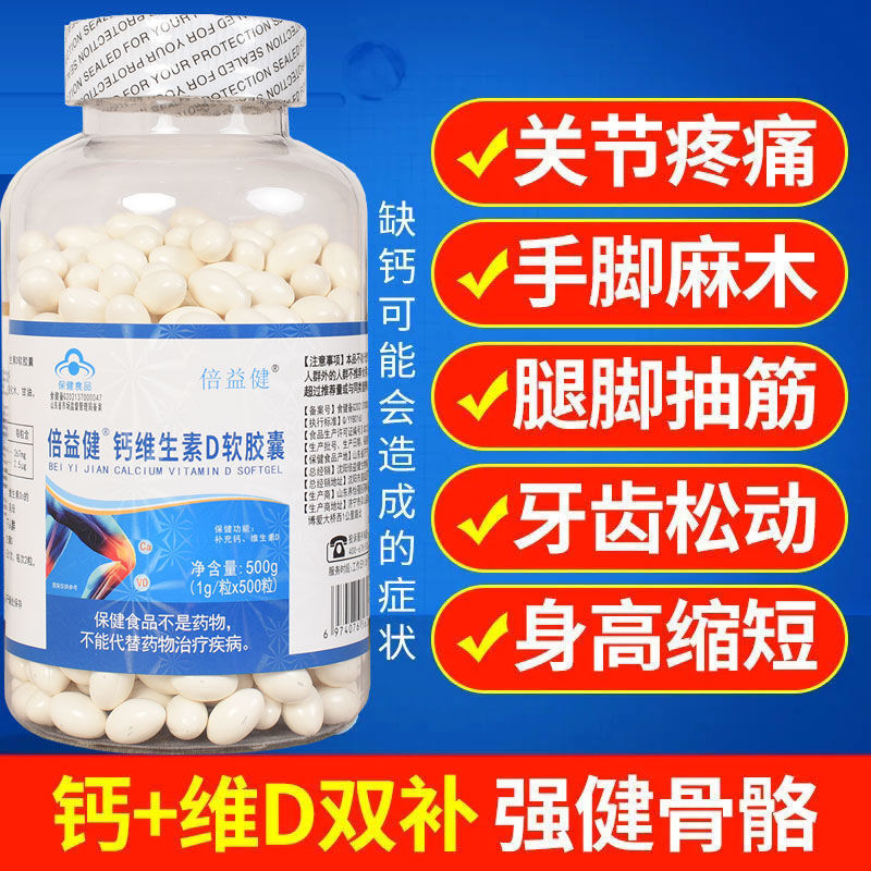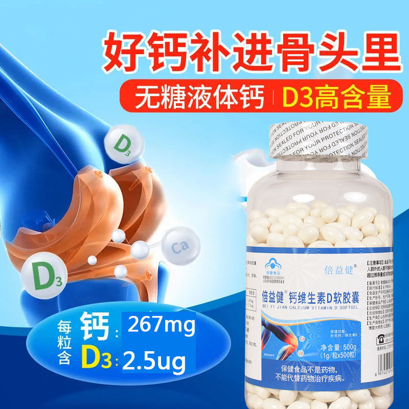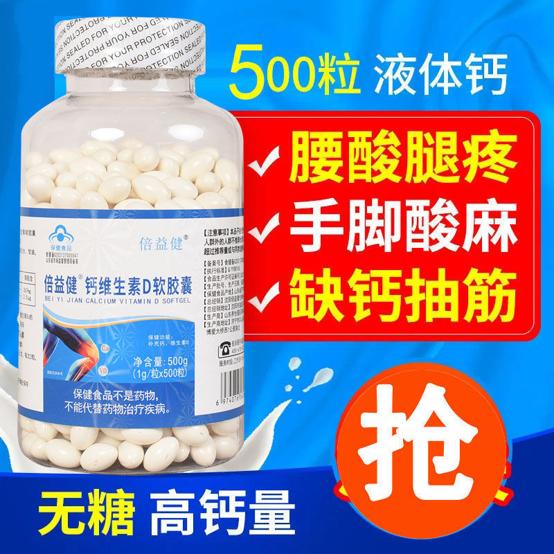 【1000粒】倍益健钙维生素D软胶囊中老年牙齿骨骼成人补液体钙