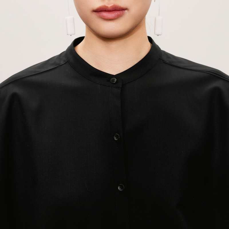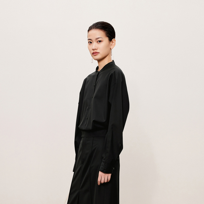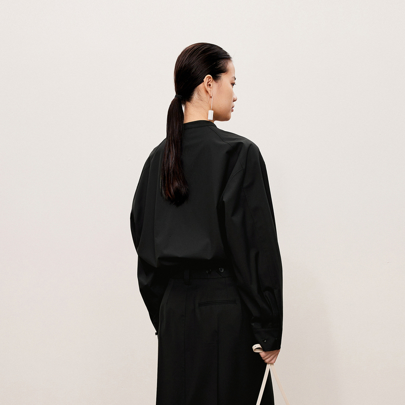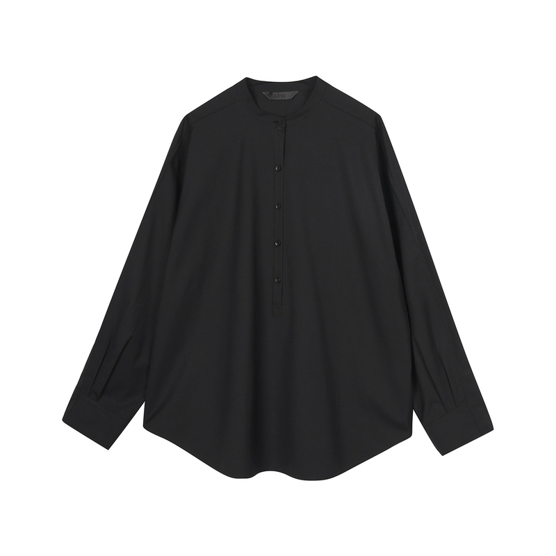 LESS春秋绵羊毛立领衬衫女东方古典套头半开襟通勤上衣2O9210410