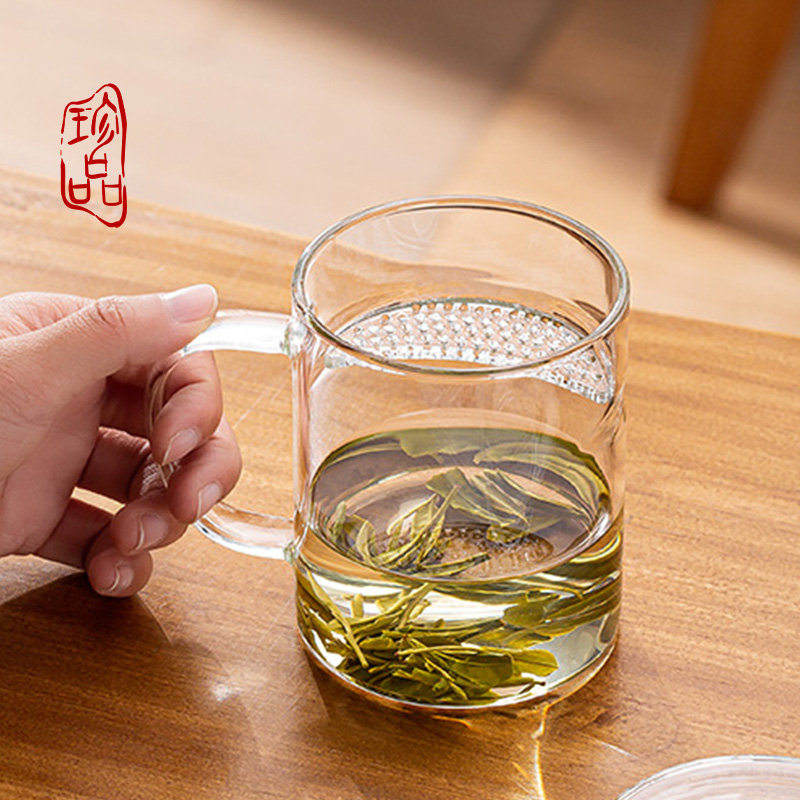 大容量月牙杯过滤茶杯带滤网水杯男士泡茶玻璃杯茶水分离杯绿茶杯
