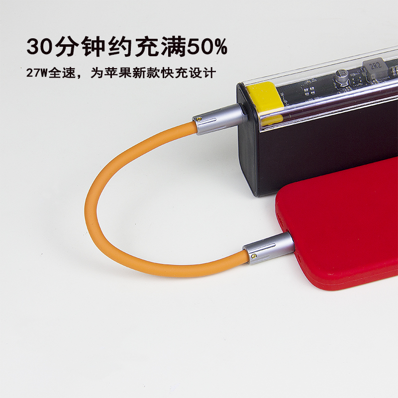 手机客制化充电宝适用苹果充电线短款27W便携快充数据线25cm硅胶