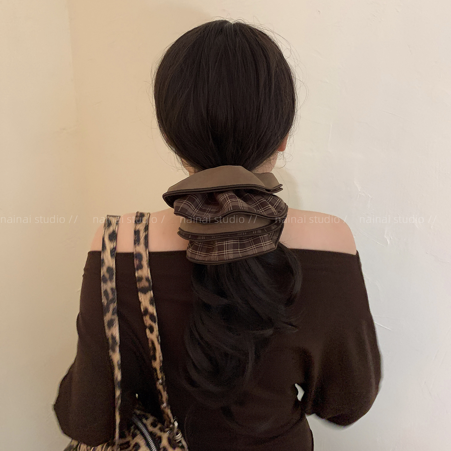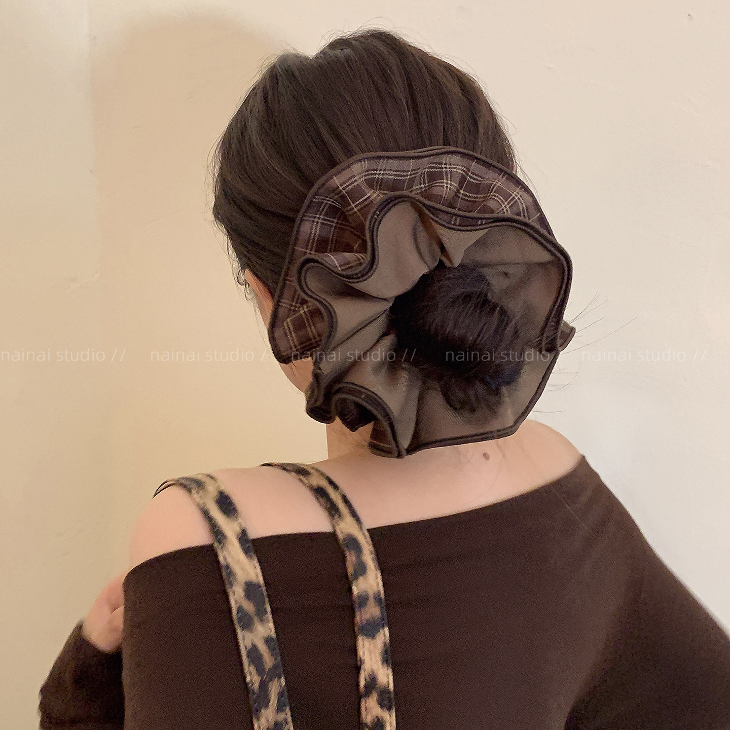 蓝色+咖色格子大肠~四层超大号高级感复古格纹丸子头马尾发绳头绳