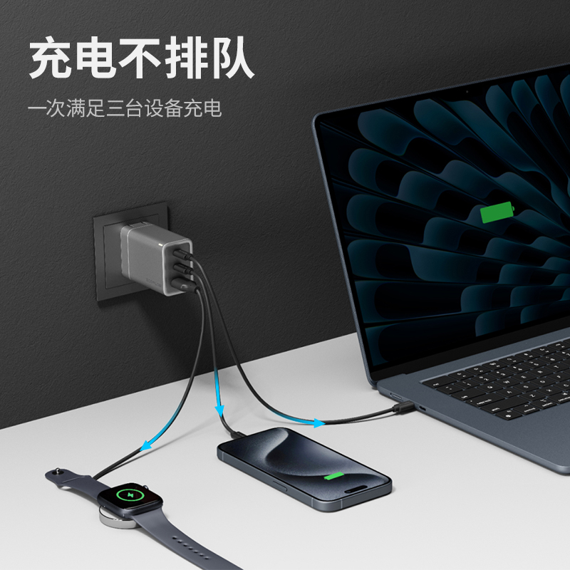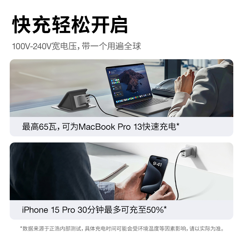 【iPhone17新机首选】正浩65W氮化镓充电器三口闪充PD快充适用苹果17ProMax手机平板笔记本Air新款充电头