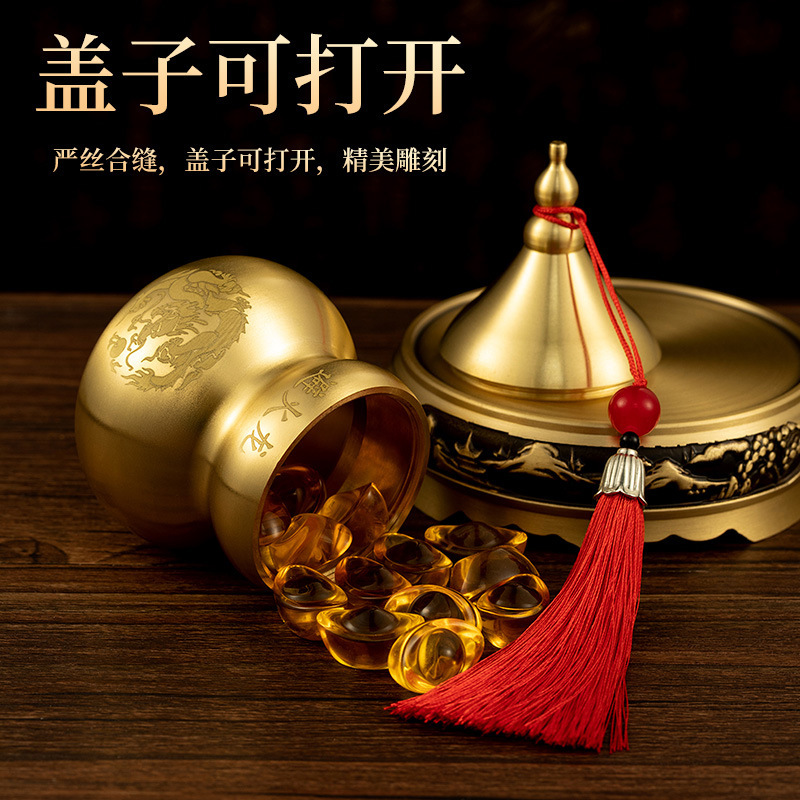 避火龙瓶子纯黄铜解决厨房西北角壁火龙瓶辟黄碎石水晶铜葫芦摆件