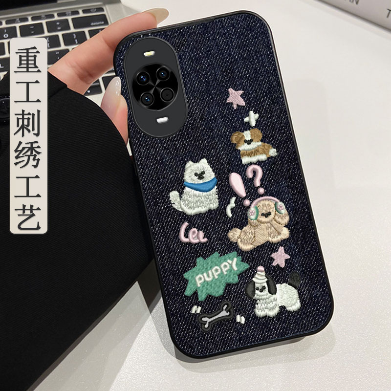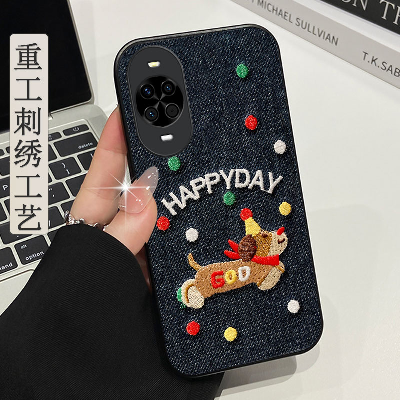 真牛仔布刺绣适用华为nova14手机壳保护套20小众pura80高级感9女款90防摔P60新款30 5G/2025年9全包P60+外壳