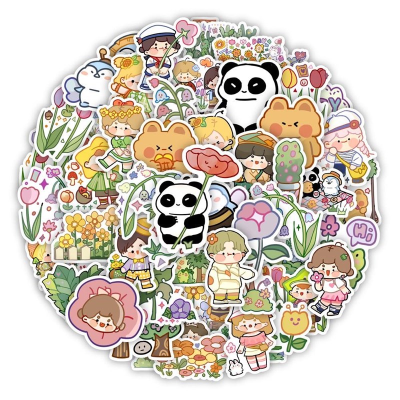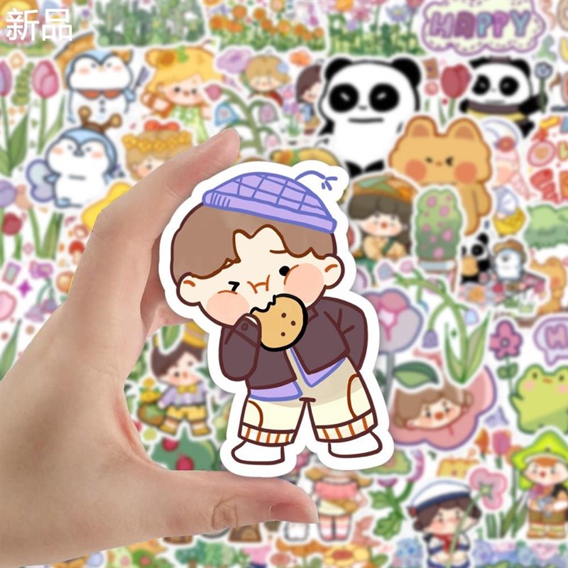 卡通贴纸春天之旅小卡片人物动手装饰物手账机壳diy行李箱防水小
