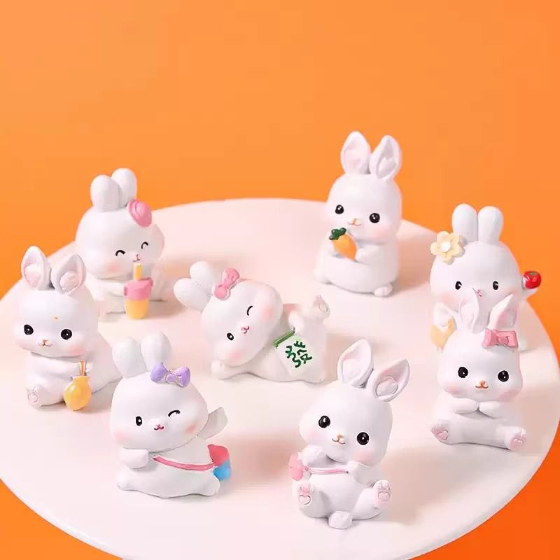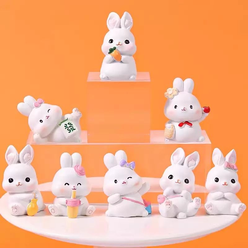 可爱兔子蛋糕装饰树脂摆件萝卜小兔子宝宝百天周岁生日田园风插件