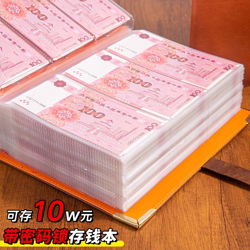 10万元密码锁现金存钱本大容量存钱夹钱册理财百元钞票收纳册纸币钱币人民币收藏册活页攒钱本子2025年新款