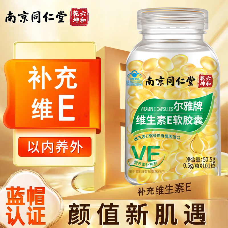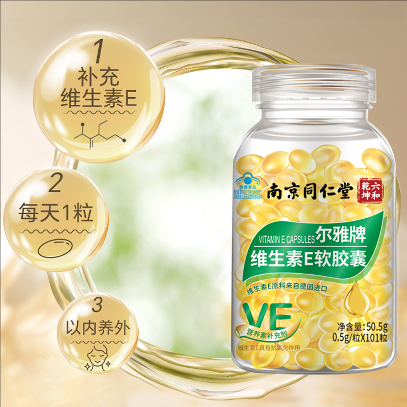 南京同仁堂天然维生素e软胶囊内服淡外用涂斑痘印涂脸呵护肌肤