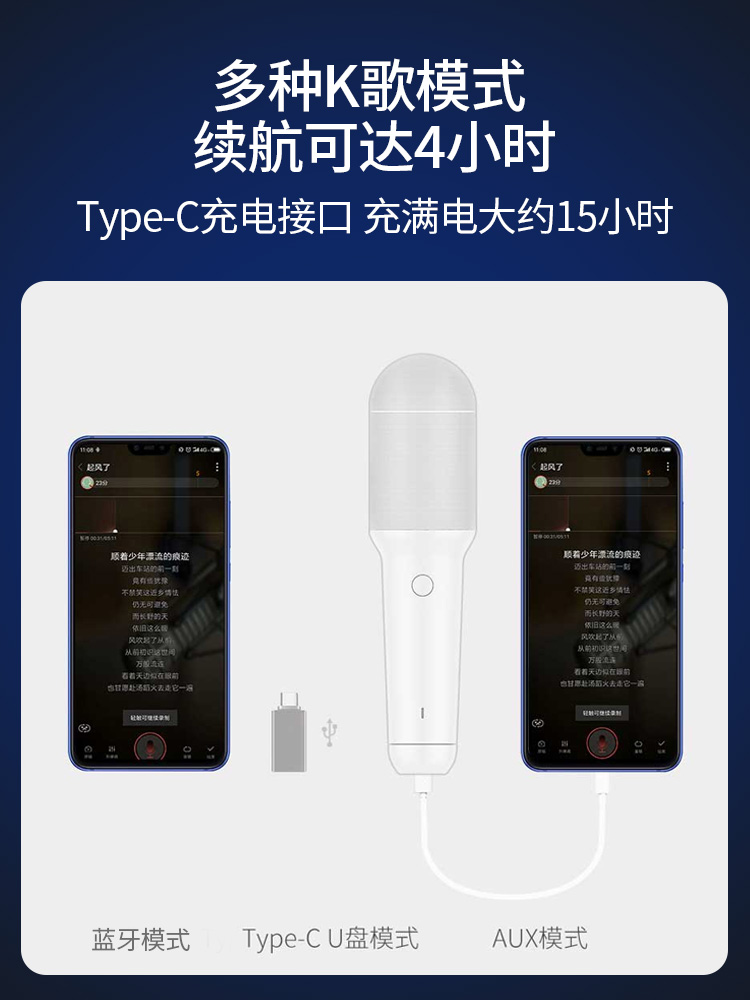 悦米YMI一体式K歌麦克风家用直播话筒休闲KTV无线蓝牙录唱歌