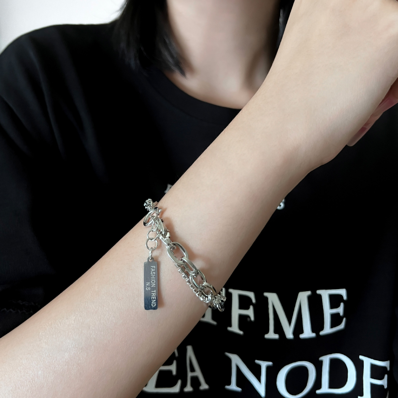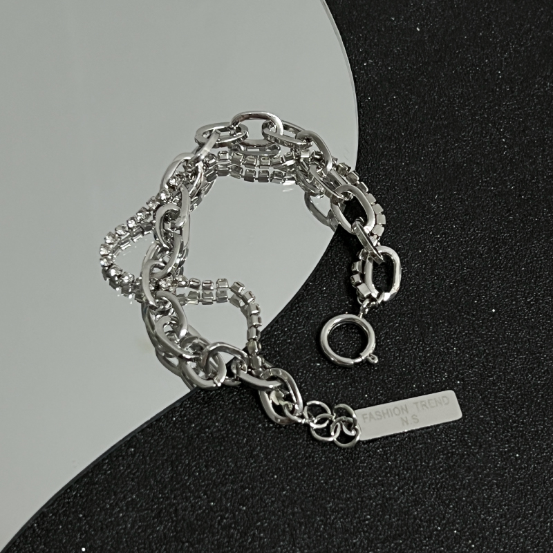 KANSAI新款双层叠戴水钻手链小众个性配饰冷淡风男女日韩嘻哈饰品
